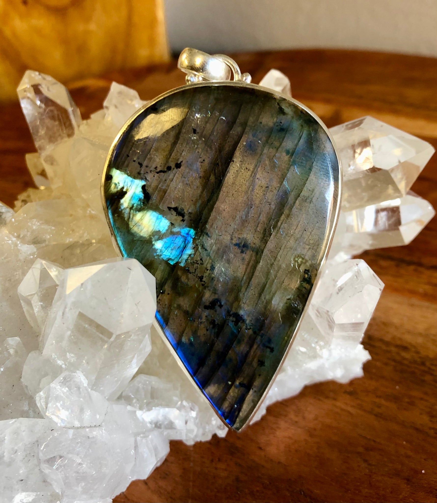 Labradorite sharpens intuition, shields our aura, brings peace, and help protect against negativity. Helpful with decision making, raising consciousness, making decisions, and dispelling fear and insecurity.