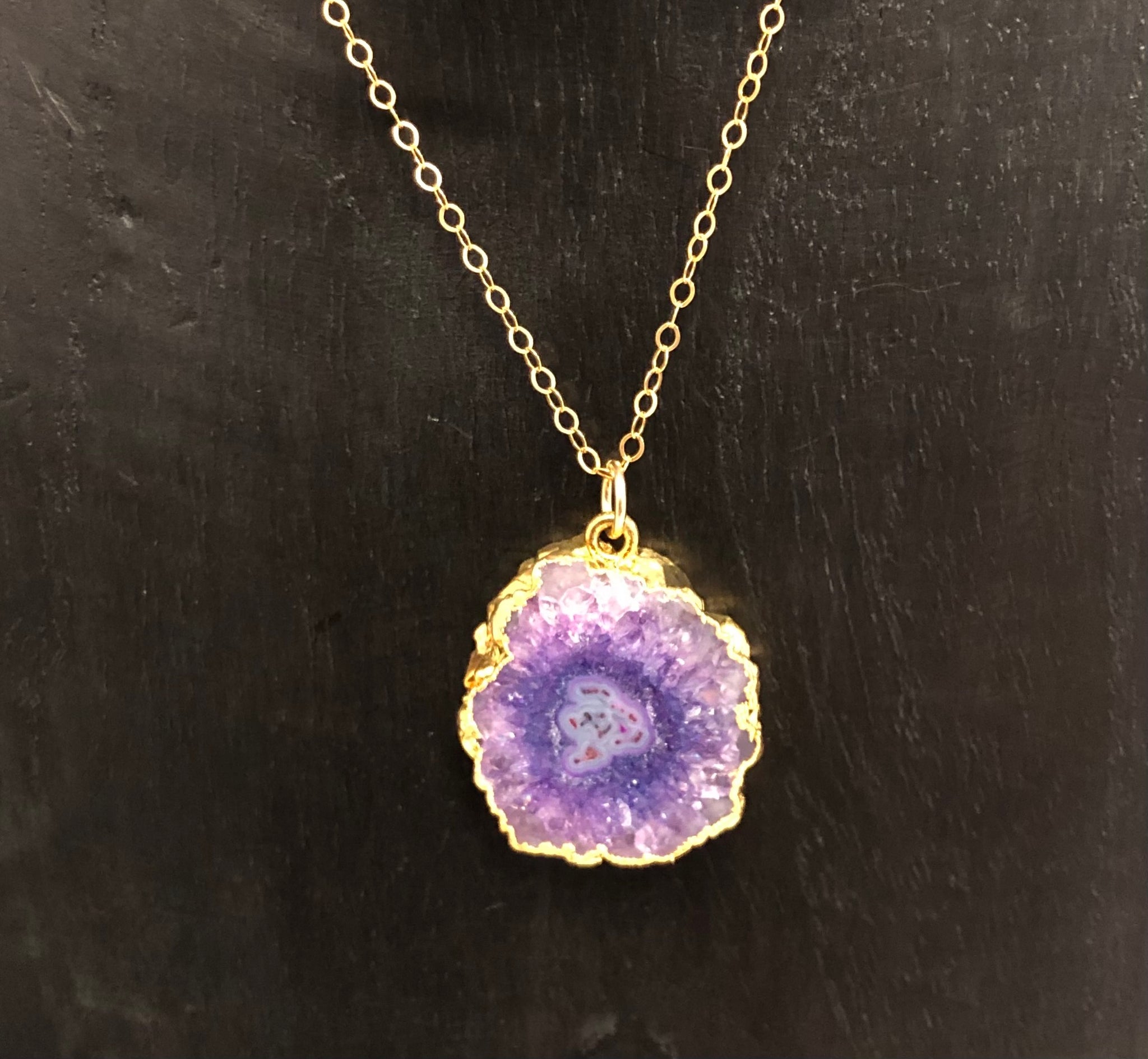 18 inches of 14k gold-filled cable chain with spring clasp, stone measuring approximately 1" in diameter. Option "A" is pictured first two photos, then B, and then C last.