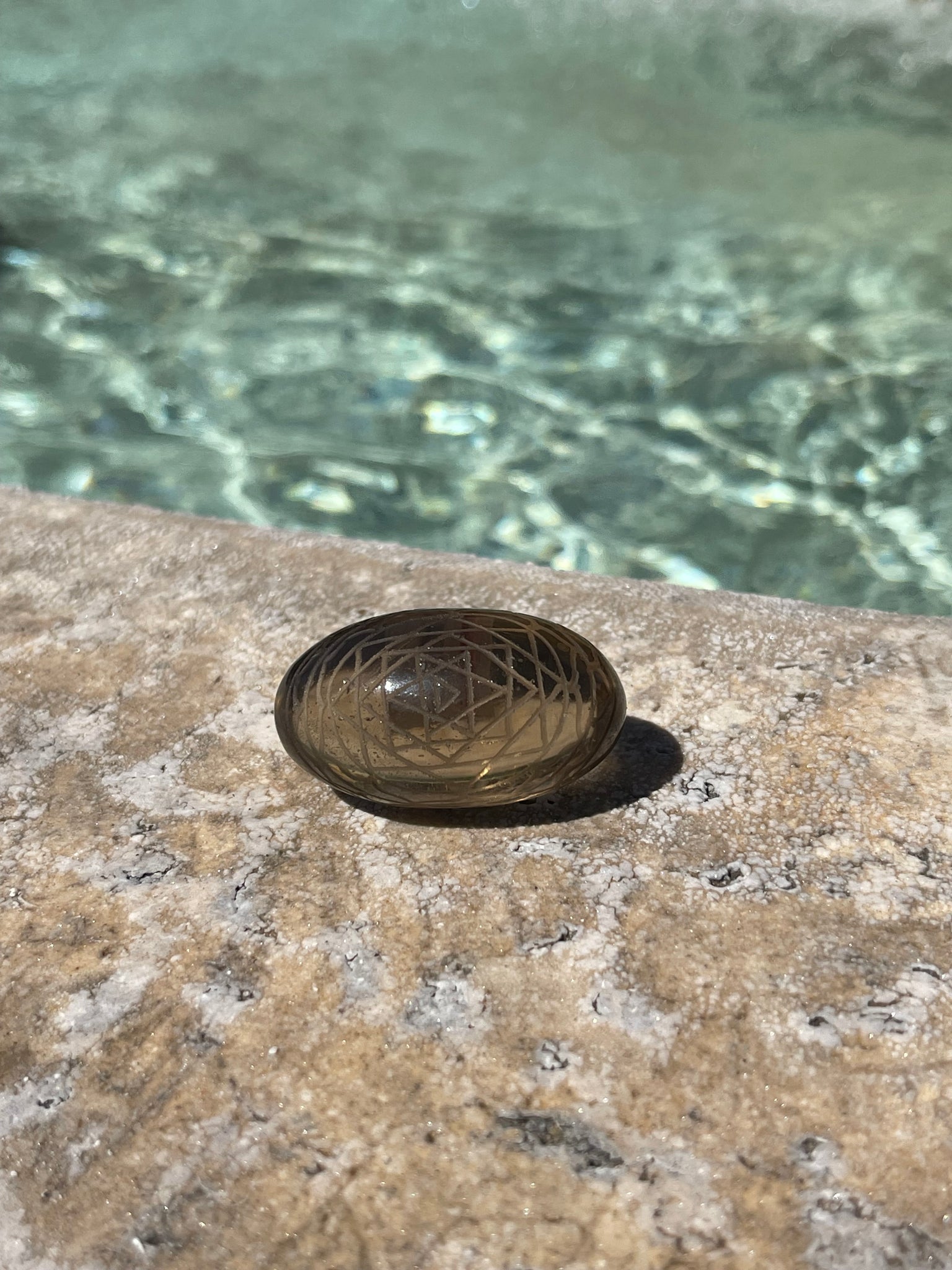 Smokey Quartz is calming and grounding. Helps us regain control of our lives. It is uplifting for when one is feeling down. Some say the reason it has its smoky color is that when it was formed, it absorbed and trapped the negative energies from the world around it. Smoky quartz is a protective and grounding Root stone that absorbs negative energy and purifies your aura. Shri Yantra is for balancing masculine and feminine energies.