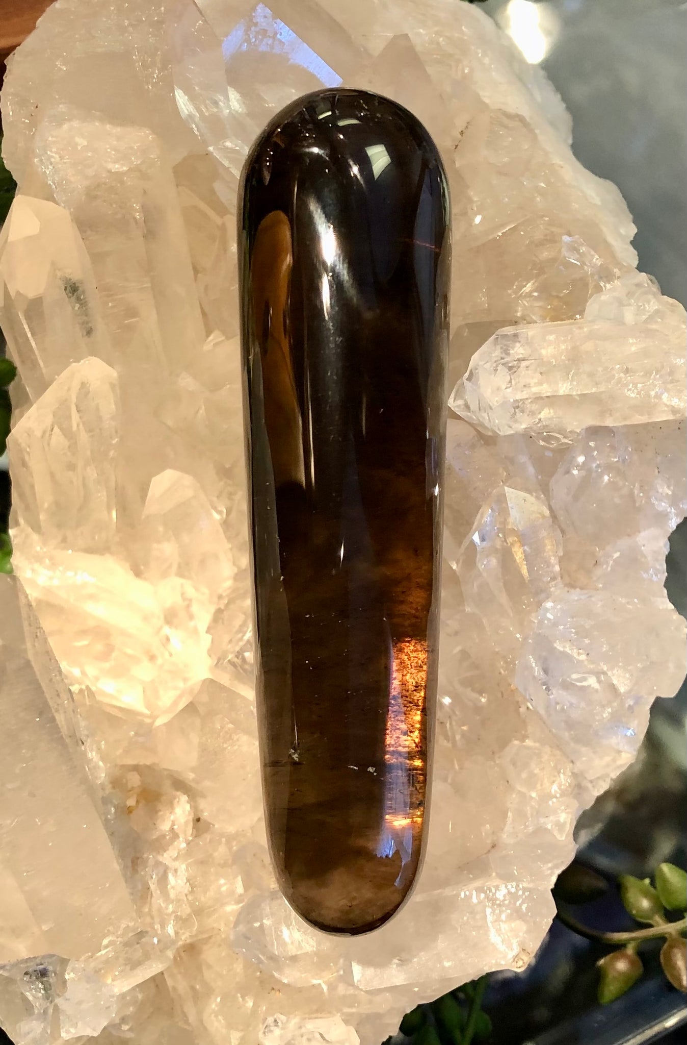 Smokey Quartz is calming and grounding. Helps us regain control of our lives. It is uplifting for when one is feeling down. Some say the reason it has its smoky color is that when it was formed, it absorbed and trapped the negative energies from the world around it. Smoky quartz is a protective and grounding Root stone that absorbs negative energy and purifies your aura.