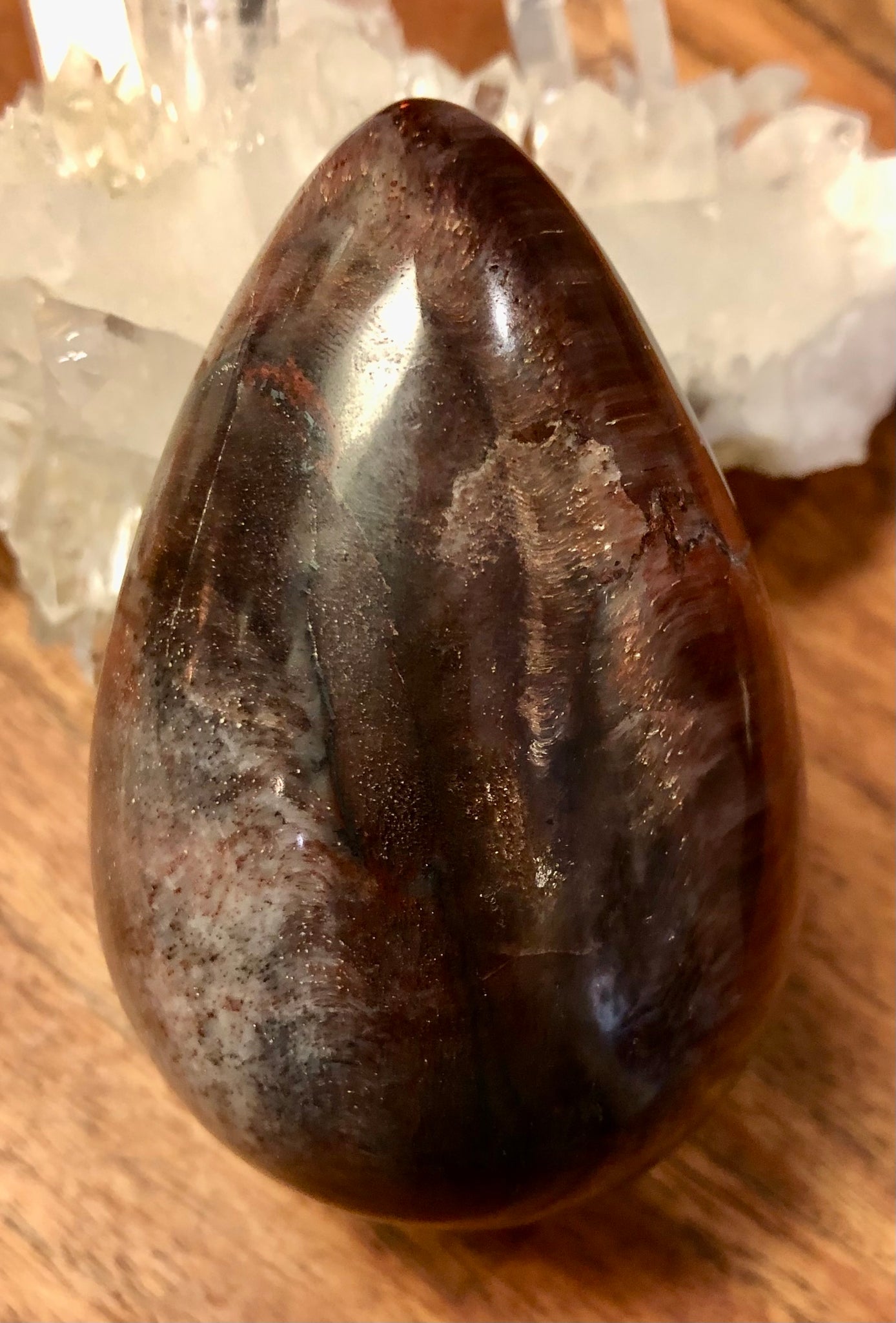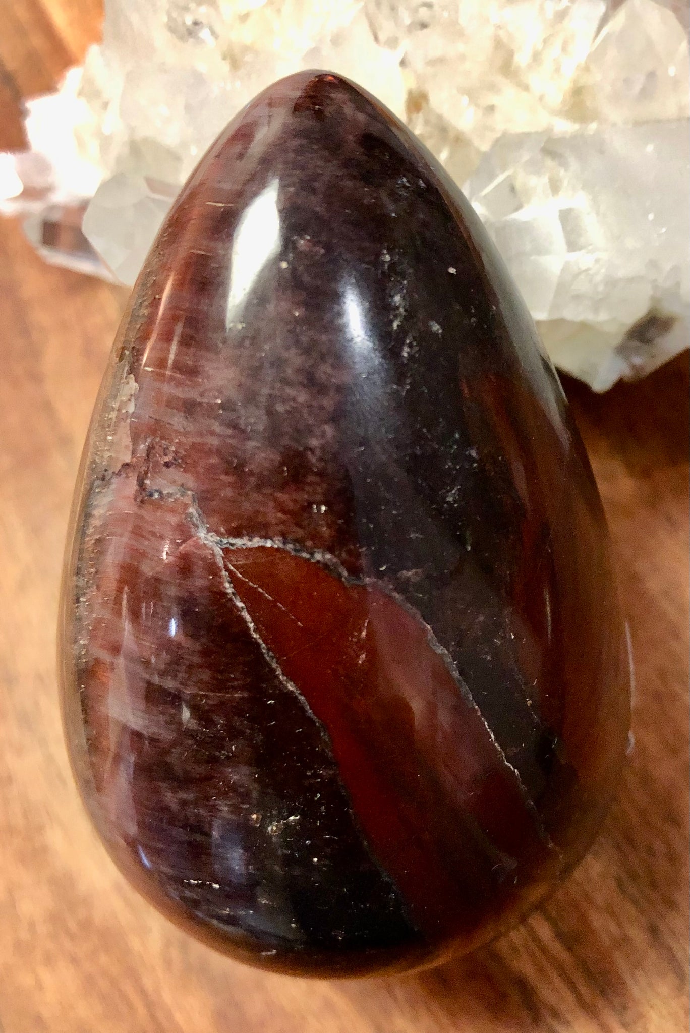 Tiger Iron is a gemstone containing layers of golden tigereye, metallic grey hematite, and red jasper. It is used to support grounding and stamina and is affiliated with the root, sacral and solar plexus chakras. Tiger's Eye is used to help with Integrity, Stress, Confidence, Empowering Will, & Decisive Decision Making. Hematite grounds and protects. It strengthens our connection with the earth, making us feel safe and secure. Aids in concentration, self-esteem, memory, and protection from other people's negativity. Jasper is grounding, peaceful, and helps one remain in the present. It is for meditation and centering. It connects one to the earth. Red Jasper is for root chakra.