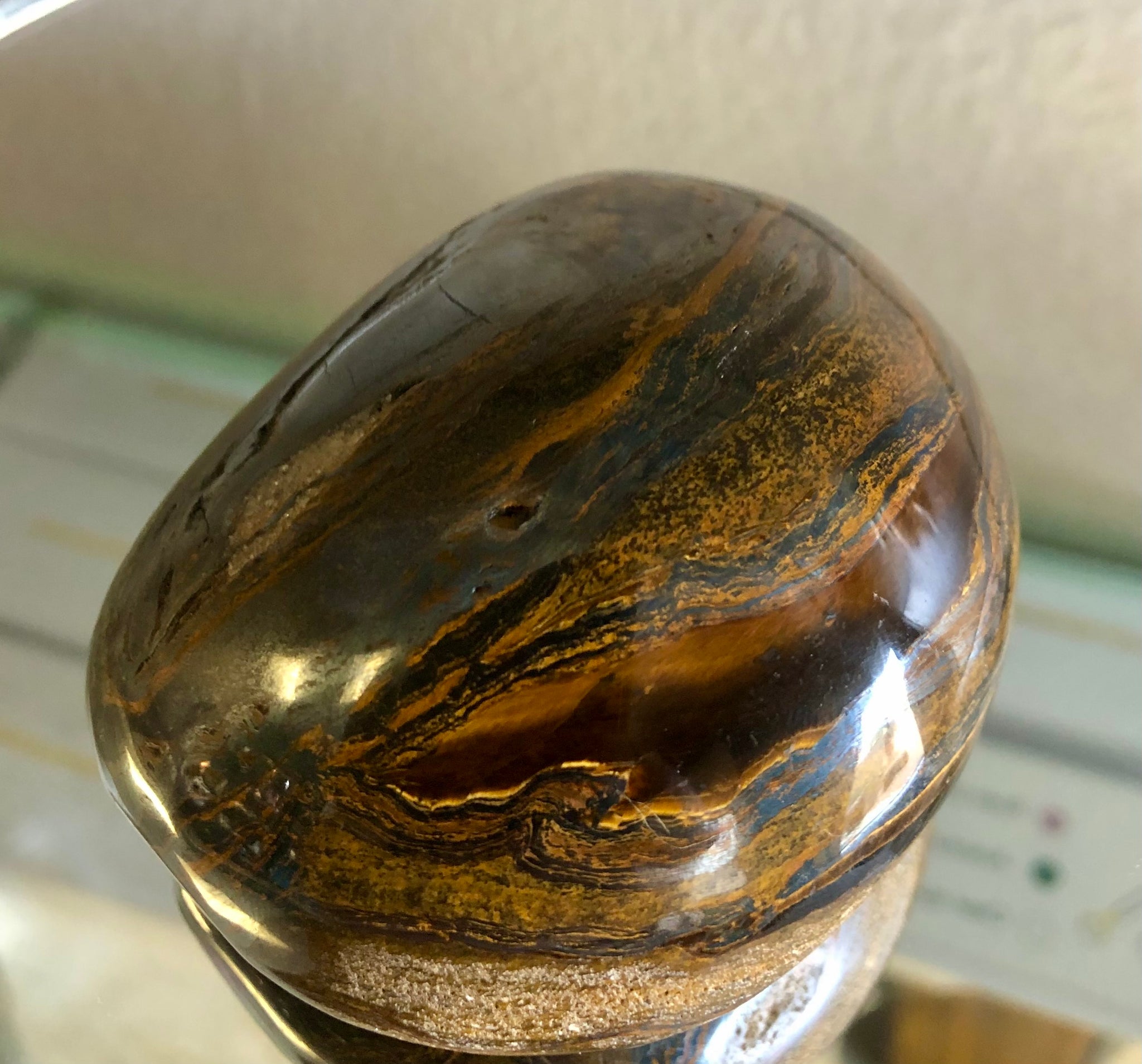 Tiger Iron is a gemstone containing layers of golden tigereye, metallic grey hematite, and red jasper. It is used to support grounding and stamina and is affiliated with the root, sacral and solar plexus chakras. Tiger's Eye is used to help with Integrity, Stress, Confidence, Empowering Will, & Decisive Decision Making. Hematite grounds and protects. It strengthens our connection with the earth, making us feel safe and secure. Aids in concentration, self-esteem, memory, and protection from other people's negativity. Jasper is grounding, peaceful, and helps one remain in the present. It is for meditation and centering. It connects one to the earth. Red Jasper is for root chakra.